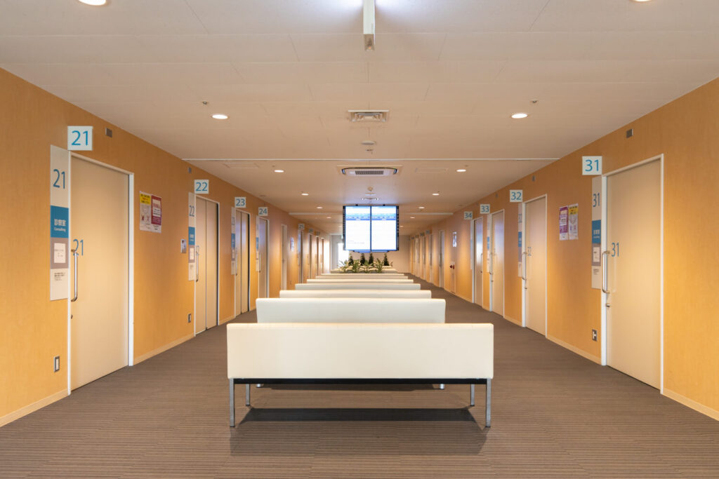 受付後、少し落ち着いてから上着を脱いだ状態で血圧と体重測定をしてください。